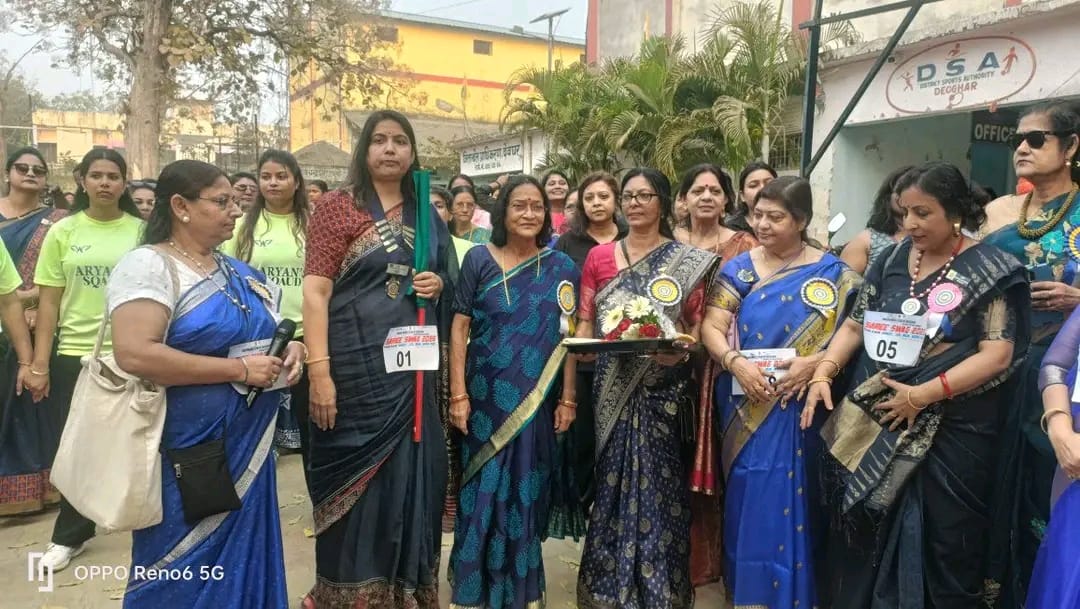 देवघर- संजय यादव अंतर्राष्ट्रीय महिला दिवस के अवसर पर इनर व्हील क्लब ऑफ देवघर द्वारा अध्यक्ष ज्ञानी मिश्रा , सचिव कंचन मूर्ति एवं प्रोग्राम कोऑर्डिनेटर रश्मि रंजन झा के संयुक्त नेतृत्व में साड़ी वॉकाथन का भव्य आयोजन किया गया। इस अनोखे आयोजन में देवघर की लगभग लगभग 400 महिलाओं ने उत्साहपूर्वक भाग लेकर महिला शक्ति, स्वास्थ्य जागरूकता और एकजुटता का संदेश दिया।इस वॉकाथन का मुख्य उद्देश्य अंतर्राष्ट्रीय महिला दिवस का उत्सव मनाने के साथ-साथ महिलाओं के बीच सर्वाइकल कैंसर के प्रति जागरूकता फैलाना था। कार्यक्रम की विशेषता यह रही कि इसमें ट्रैक सूट के स्थान पर साड़ी को प्राथमिकता दी गई, जो भारतीय संस्कृति और परंपरा की गरिमा का प्रतीक है। देवघर की महिलाओं ने साड़ी पहनकर इस वॉकाथन में भाग लेते हुए यह संदेश दिया कि भारतीय नारी अपनी परंपरा और संस्कारों के साथ भी हर क्षेत्र में नई उड़ान भर सकती है।वॉकाथन की शुरुआत इंडोर स्टेडियम से हुई, जिसे समाजसेवी रीता चौरसिया ने इनर व्हील क्लब की सदस्यों के साथ संयुक्त रूप से फ्लैग ऑफ कर रवाना किया। यह वॉकाथन इंडोर स्टेडियम से प्रारंभ होकर VIP चौक, टावर चौक होते हुए राय कंपनी मोड़ से गुजरकर आर मित्रा स्कूल में जाकर संपन्न हुई।मार्ग में मॉर्निंग वॉक ग्रुप द्वारा महिलाओं के बीच पानी और टॉफी का वितरण किया गया, जिससे प्रतिभागियों की थकान दूर हो सके। वॉकाथन प्रारंभ होने से पूर्व choreographer आर्यन चौधरी द्वारा अपने टीम के साथ महिलाओं का वार्म-अप और जुम्बा कराया गया। संगीत की धुन पर महिलाओं ने पूरे उत्साह के साथ भाग लिया, जिससे कार्यक्रम का वातावरण ऊर्जा और उल्लास से भर गया।आर मित्रा स्कूल परिसर पहुंचने पर प्रतिभागियों का गर्मजोशी से स्वागत किया गया। यहां गोल्ड जिम की ओर से सभी महिलाओं को स्वागत स्वरूप जूस प्रदान किया गया। विद्यालय के प्रांगण में महिलाओं के लिए सुसज्जित मंच और बैठने की सुंदर व्यवस्था की गई थी, जहां सभी प्रतिभागियों ने पहुंचकर अपना स्थान ग्रहण किया। सभी प्रतिभागियों को को मेडल और प्रशस्ति पत्र सम्मान स्वरूप दिया गया ,साथ ही स्नेक्स भी प्रदान किया गया कार्यक्रम को सफल बनाने में आर मित्रा स्कूल के अरविंद सर का विशेष योगदान रहा। उन्होंने न केवल विद्यालय परिसर उपलब्ध कराने में सहयोग किया, बल्कि विद्यालय की 25 एन. सी. सी कैडेट छात्राओं को भी आयोजन में सहयोग के लिए लगाया, जिन्होंने पूरे कार्यक्रम के दौरान अनुशासन और व्यवस्था बनाए रखने में सराहनीय भूमिका निभाई।मंच से सभी अतिथियों और प्रतिभागियों का स्वागत क्लब अध्यक्षा ज्ञानी मिश्रा द्वारा किया गया। इस अवसर पर विभिन्न संगठनों और संस्थाओं से जुड़ी महिलाओं ने बढ़-चढ़कर भागीदारी निभाई।कार