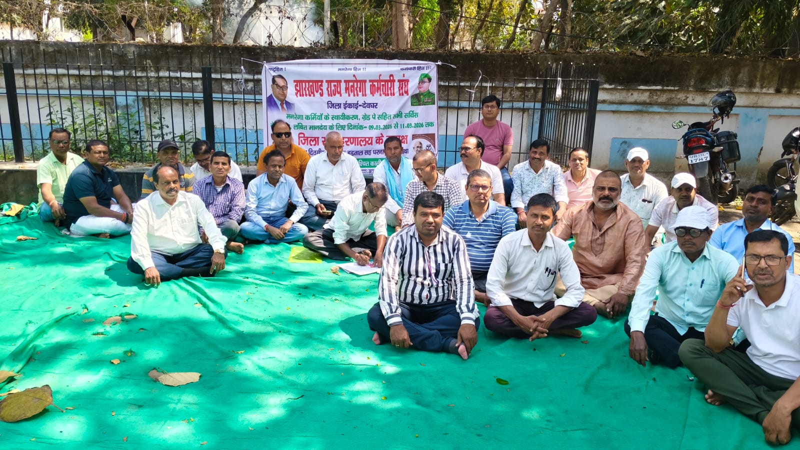 देवघर प्रतिनिधि संजय यादव देवघर-झारखंड राज्य मनरेगा कर्मचारी संघ के बैनर तले देवघर जिला के सभी मनरेगा कर्मी अपने मांगों के समर्थन में समाहरणालय के गेट के निकट अनिश्चितकालीन हड़ताल के दूसरे दिन सरकार के विरोध में धरना प्रदर्शन किया।धरना स्थल पर संबोधित करते हुए जिला अध्यक्ष सत्यम कुमार सिंह ने कहा कि सरकार बहुराष्ट्रीय कंपनियों के साथ डील करने में व्यस्त है।सरकार में बैठे लोग सिर्फ अपना नफा नुकसान देख रहे हैं इन्हें मनरेगा कर्मियों के दुख दर्द से कोई लेना-देना नहीं है।जब तक हमें स्थायीकरण,ग्रेड पे एवं अन्य वेनिफिट नहीं दिया जाता है तब तक हड़ताल जारी रहेगा। धरना स्थल पर संबोधित करते हुए भावेश कुमार ने कहा कि राज्य मनरेगा कोषांग में कार्यरत मनरेगा कर्मियों के तर्ज पर प्रखंडों में कार्यरत मनरेगा कर्मियों को भी वेतनमान दिया जाए।वही इन्होंने कहा कि सरकार को गरीब मनरेगा कर्मियों की सुधि लेनी चाहिए।लाखों परिवार का पेट पालने वाले मनरेगाकर्मी अंत मे स्वयं भूखे रह जाते हैं।सरकार इसके लिए पूरी तरह जिम्मेदार है,अगर समय रहते सरकार सचेत नहीं होती है तो सरकार को मनरेगा कर्मियों की आह लगेगी।जिला संयोजक अमित सिंह ने कहा कि सभी कर्मियों ने सरकार की ईंट से ईंट बजाने के लिए कमर कस लिया है अब निर्णय लेकर ही रहेंगे।इस दौरान मौके पर जितेंद्र कुमार झा,पंकज शर्मा,गुंजन कुमार दुबे,मुकेश कुमार चौधरी,सुधांशु शेखर सिंह सहित दर्जनों मनरेगाकर्मी मौजूद थे। Post navigation राँची l एसएसपी राकेश रंजन देर रात अचानक सड़कों पर उतरे।सुरक्षा व्यवस्था का लिया जायजा, PCR-2 के दो पुलिस पदाधिकारी सस्पेंड। विकास भवन के सभागार में नव निर्वाचित मेयर और वार्ड पार्षदों का शपथ ग्रहण